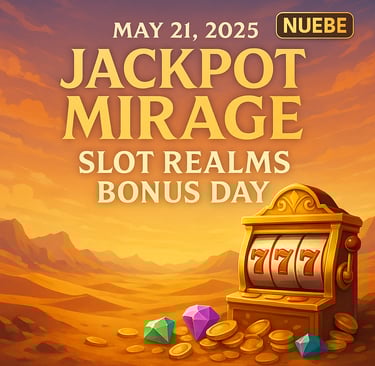 MAY 21, 2025 – NUEBE Spins Out “Jackpot Mirage: Slot Realms Bonus Day” Like Never Before